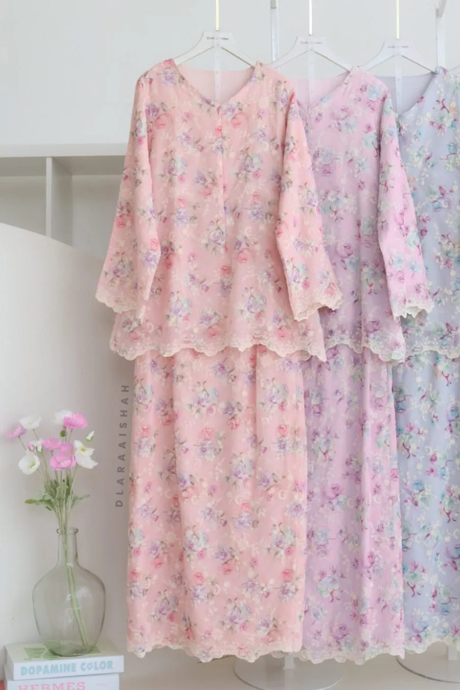 This set is crafted from premium cotton embroidered, offering a feminine and timeless appeal. The delicate floral embroidery creates a light, soft and elegant look, perfect for women who appreciate a modest yet graceful style.