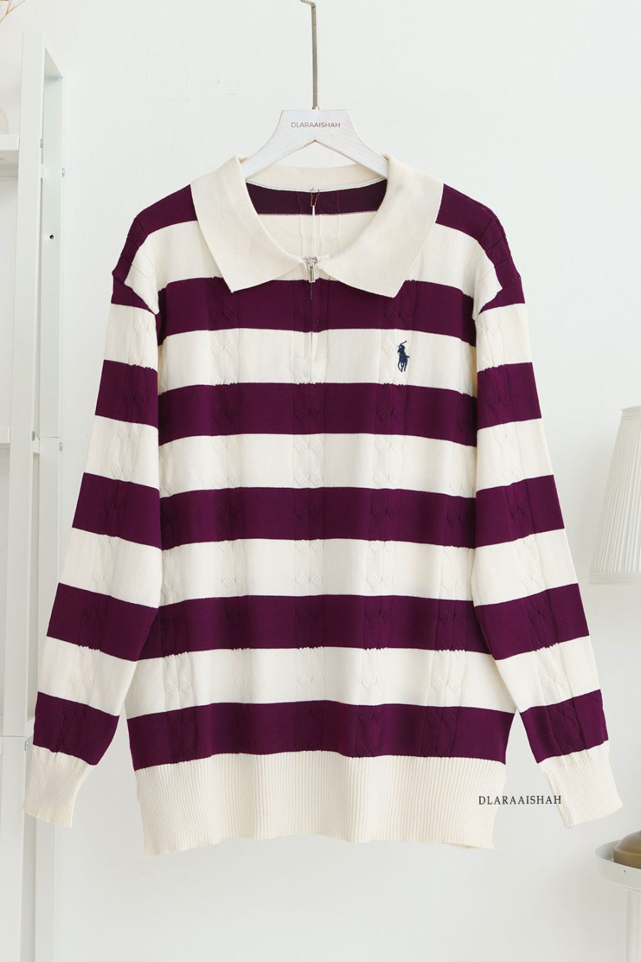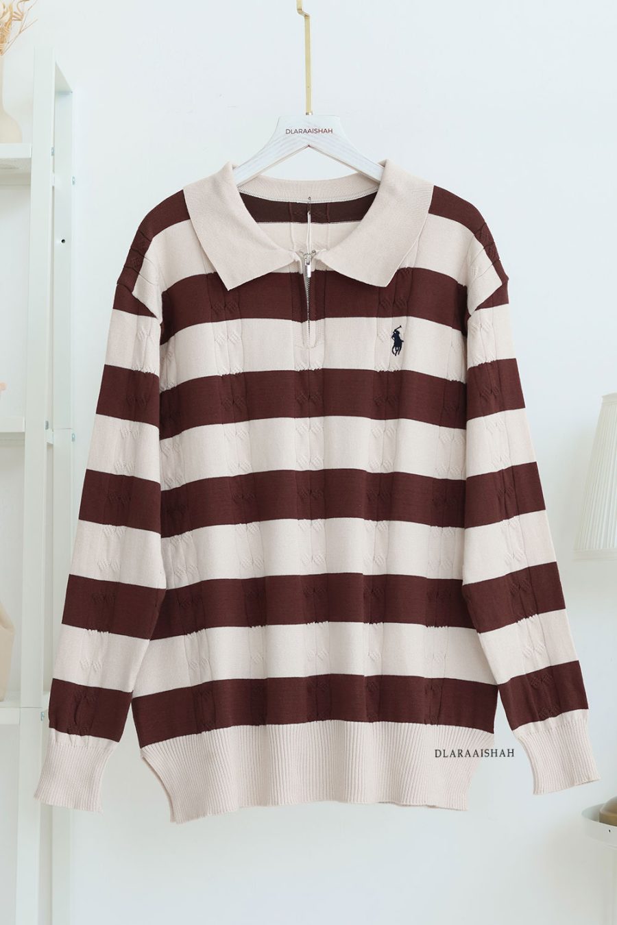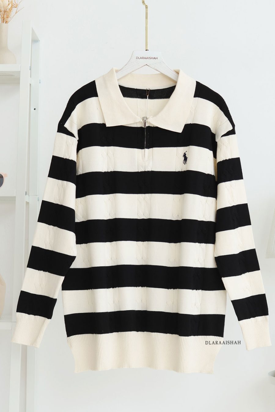 Daria Stripe Knit Top Material: Menggunakan kain knit yang lembut dan selesa Rasa sejuk bila pakai, tak panas Stretchable, senang bergerak dan tidak mudah berkedut Rekaan: Top dengan zip pendek di bahagian kolar Leher berkolar yang simple dan kemas Lengan panjang, ada cuff di hujung supaya nampak lebih kemas