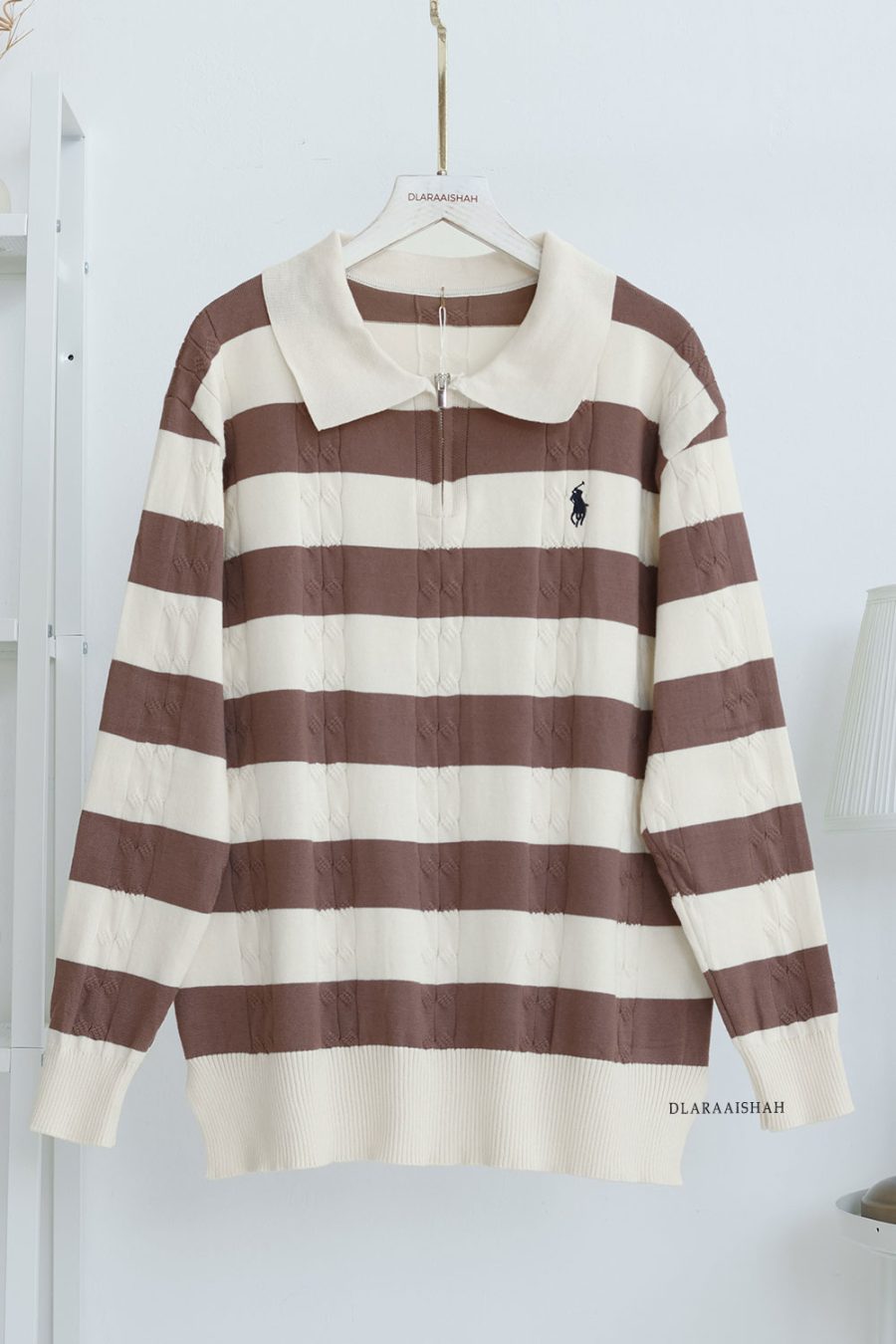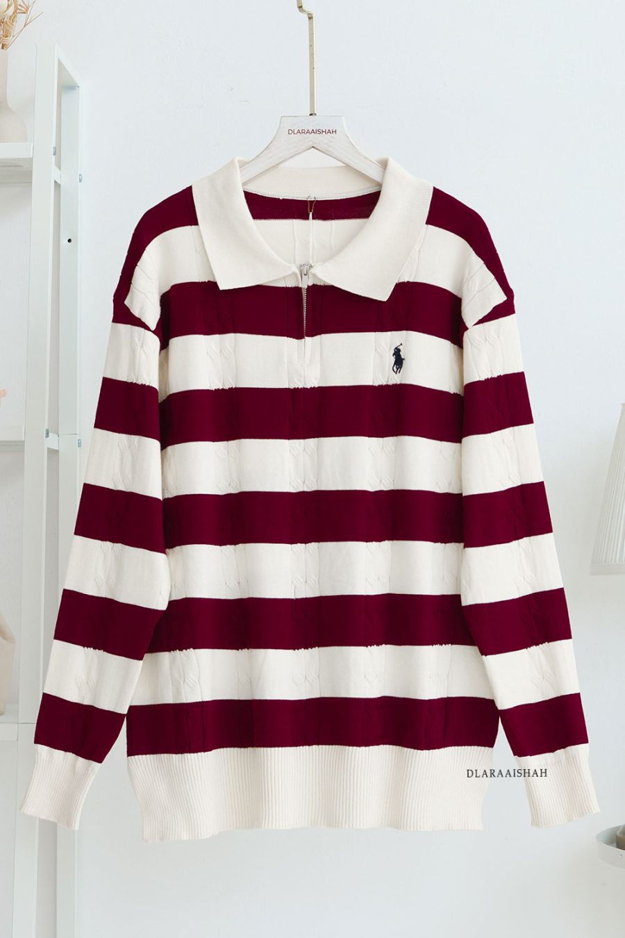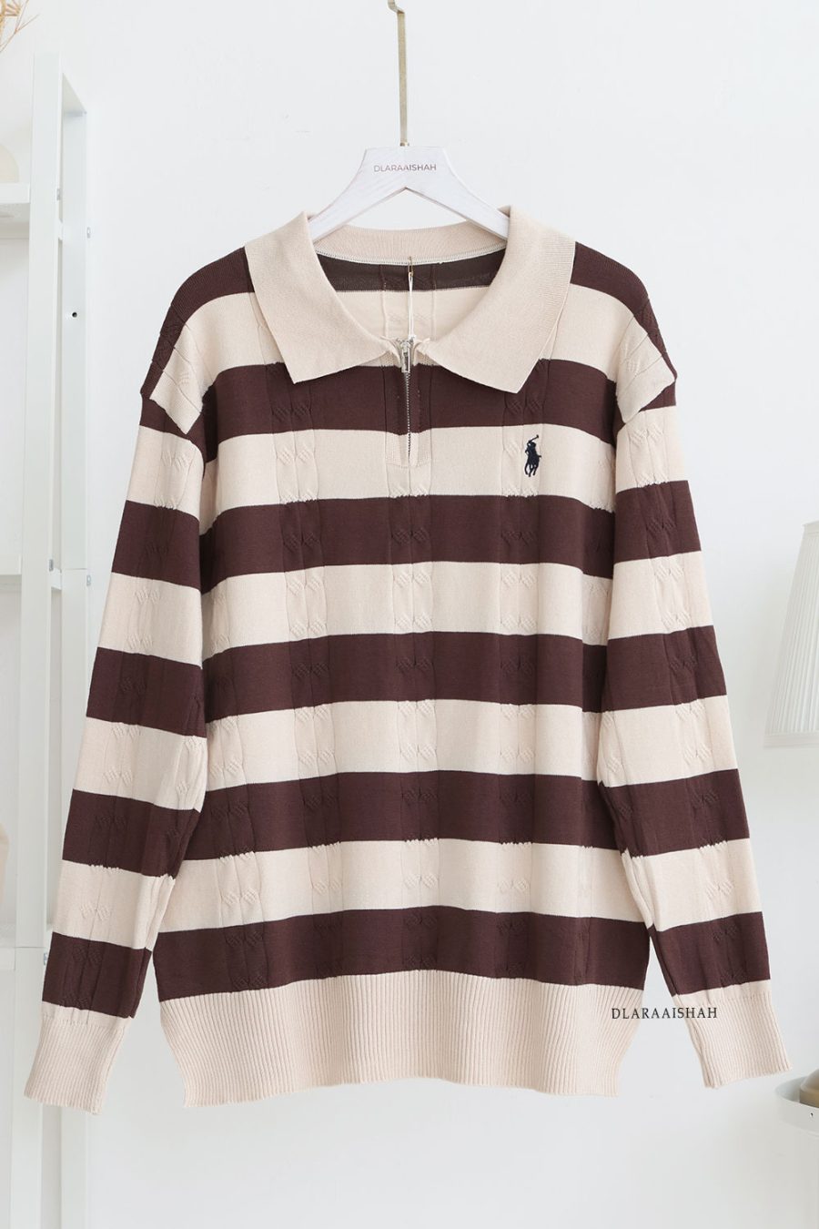 Daria Stripe Knit Top Material: Menggunakan kain knit yang lembut dan selesa Rasa sejuk bila pakai, tak panas Stretchable, senang bergerak dan tidak mudah berkedut Rekaan: Top dengan zip pendek di bahagian kolar Leher berkolar yang simple dan kemas Lengan panjang, ada cuff di hujung supaya nampak lebih kemas