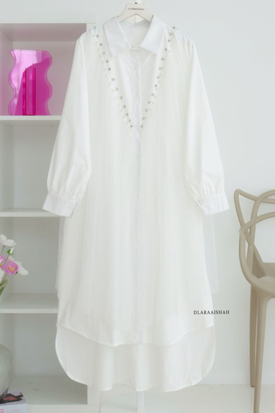 DEWI PEARL LONG BLOUSE – WHITE