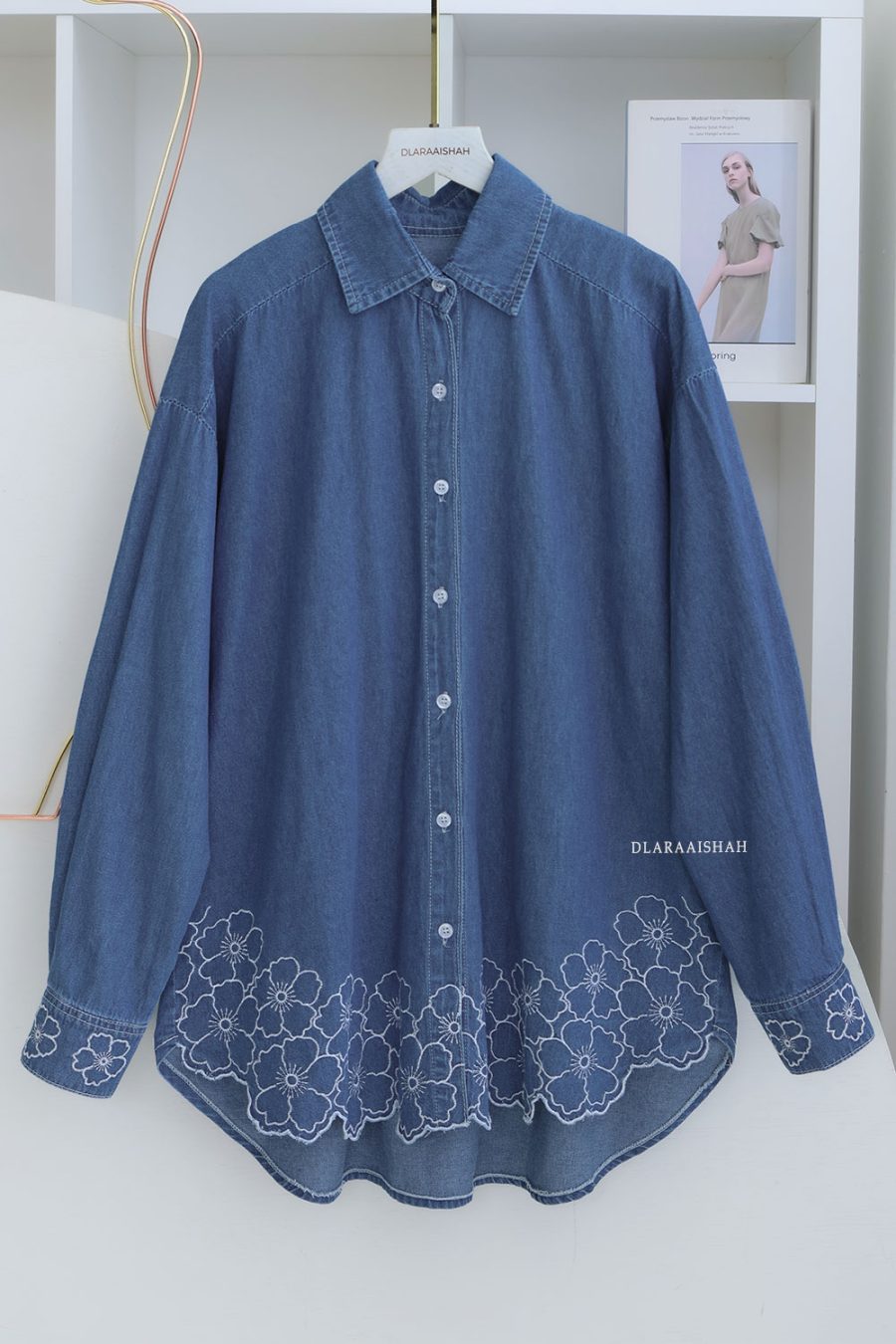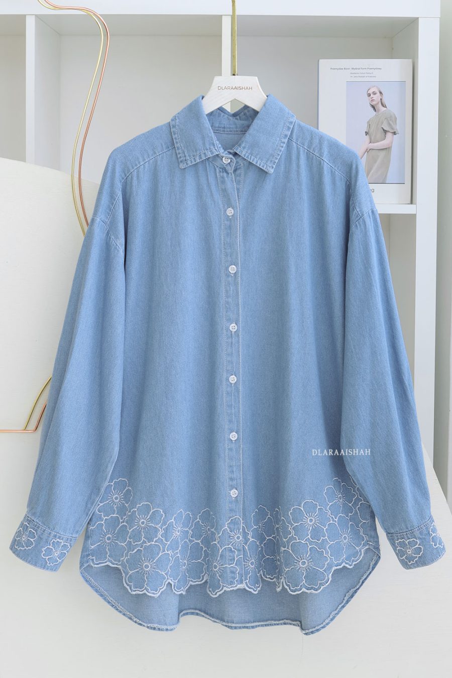 RM89.90 RM65.90 Design: • Casual oversized denim shirt. • Features adorable embroidered flowers. • Classic collar with full front button closure. Material: • Soft Premium Denim , lightweight, breathable, and super comfy for all-day wear. • Smooth texture with a relaxed drape that gives a chic casual vibe. Details: • White contrast buttons along the front. •…