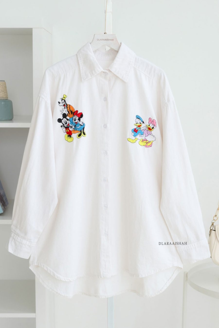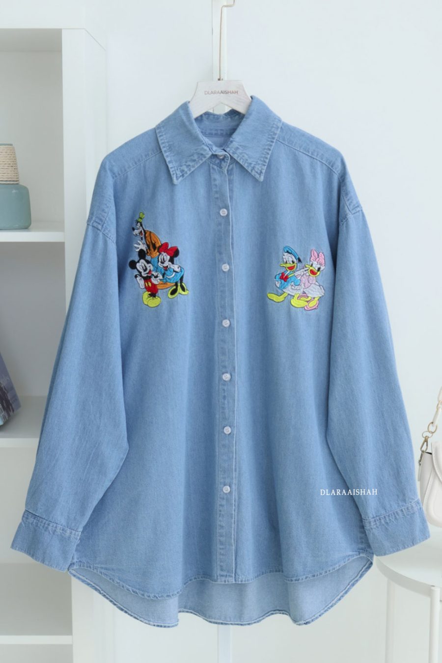 Design: • Casual oversized denim shirt. • Features adorable embroidered love. • Classic collar with full front button closure. Material: • Soft Premium Denim , lightweight, breathable, and super comfy for all-day wear. • Smooth texture with a relaxed drape that gives a chic casual vibe. Details: • White contrast buttons along the front. •…