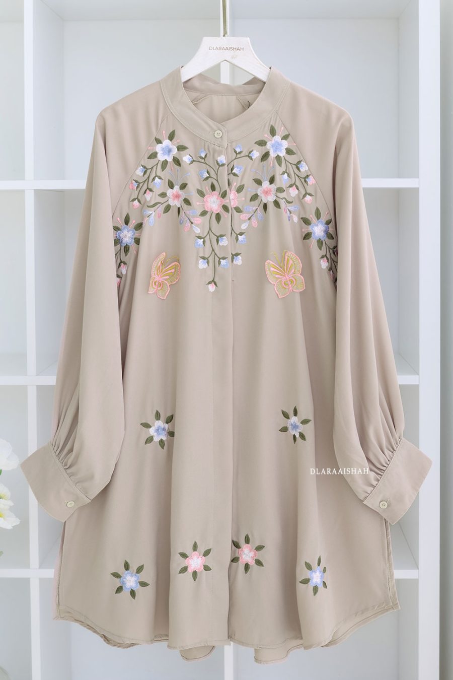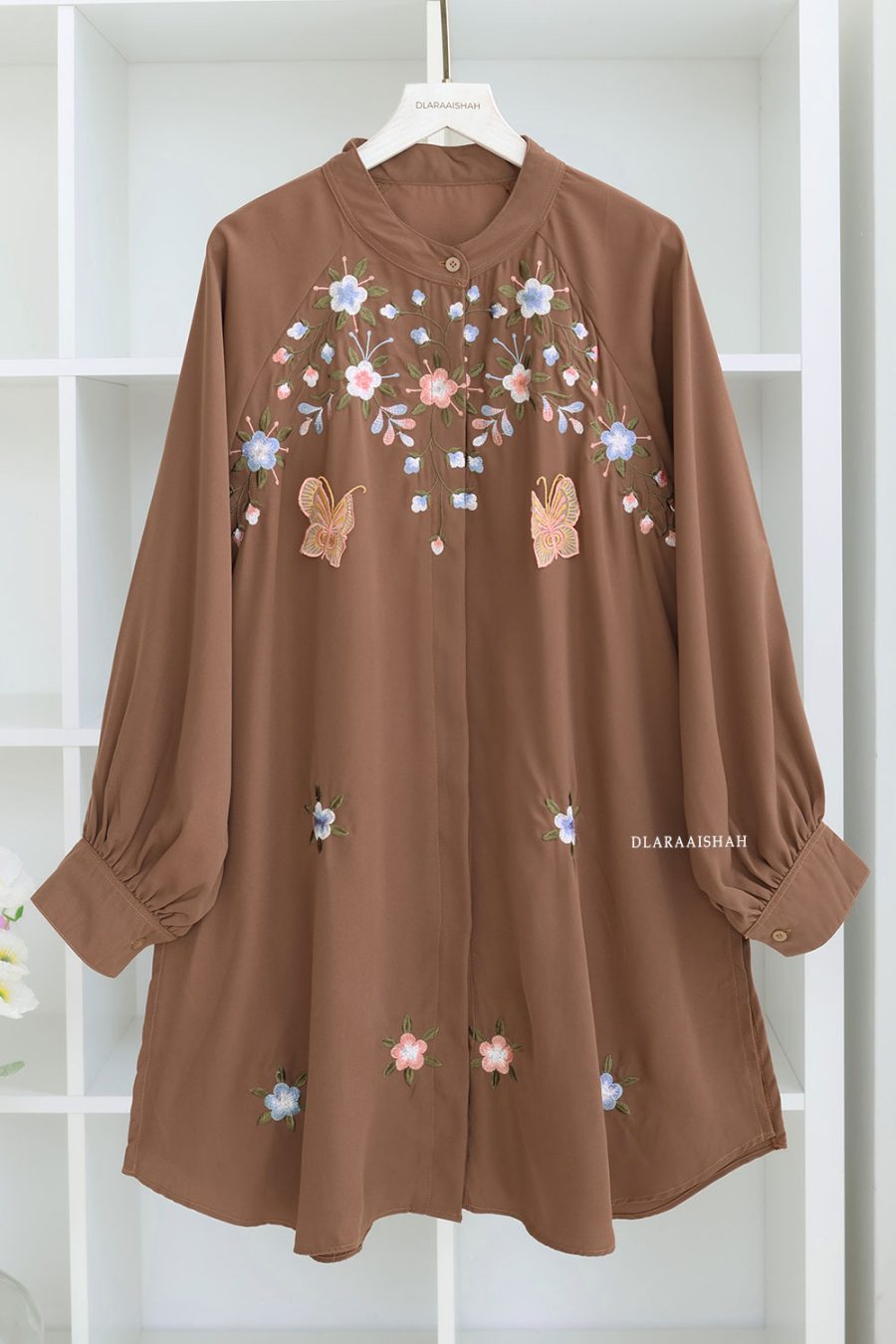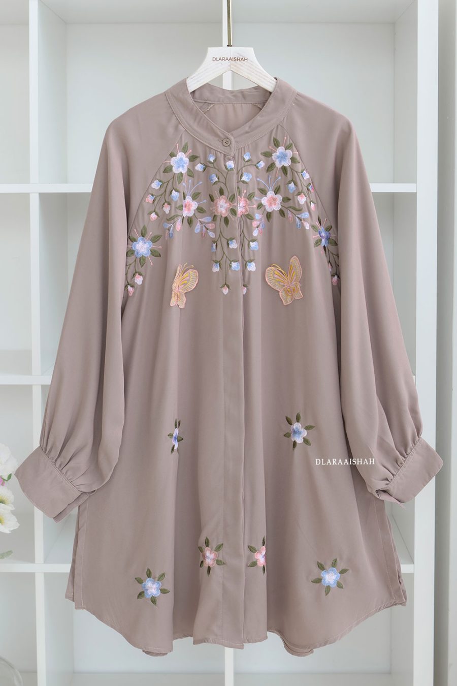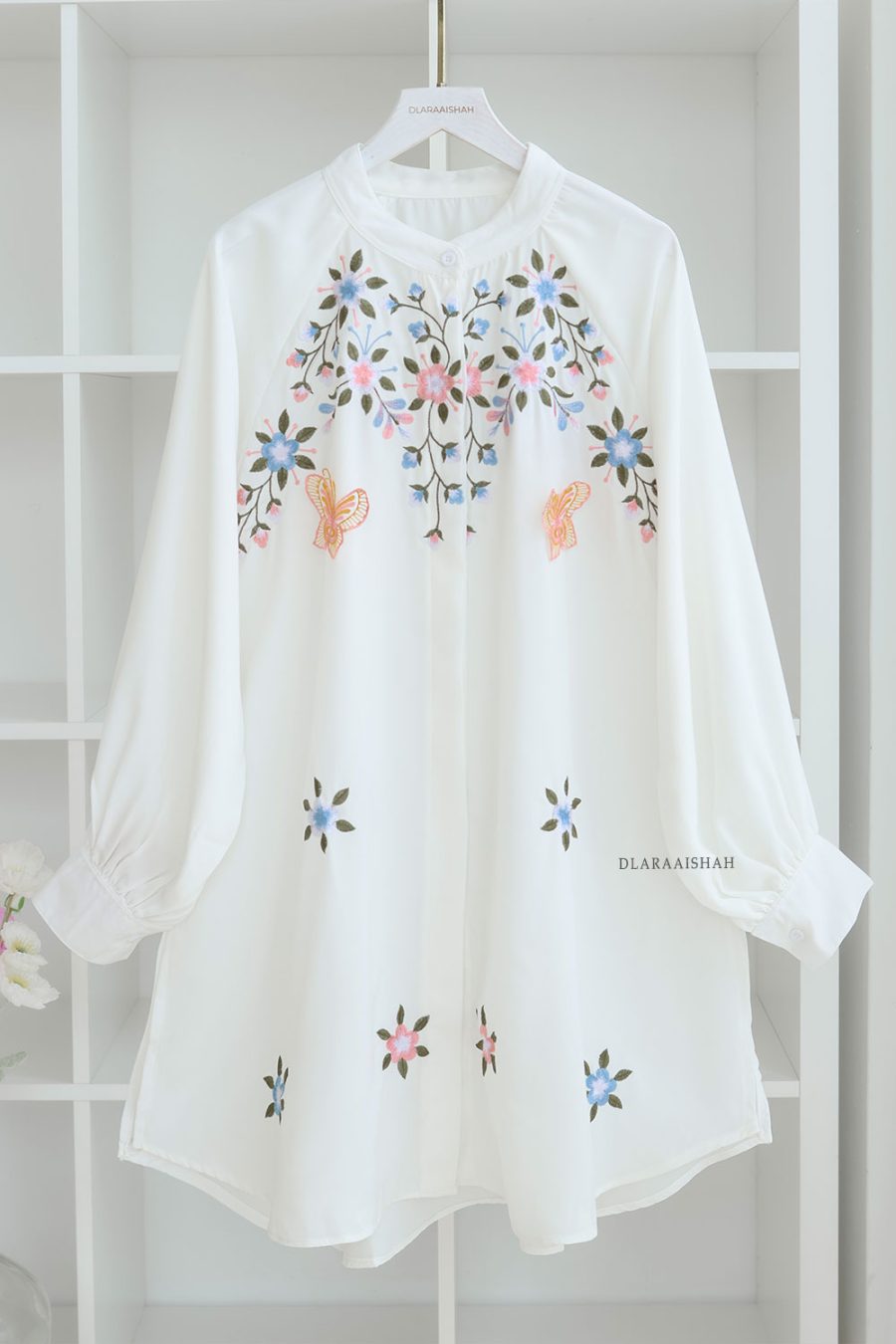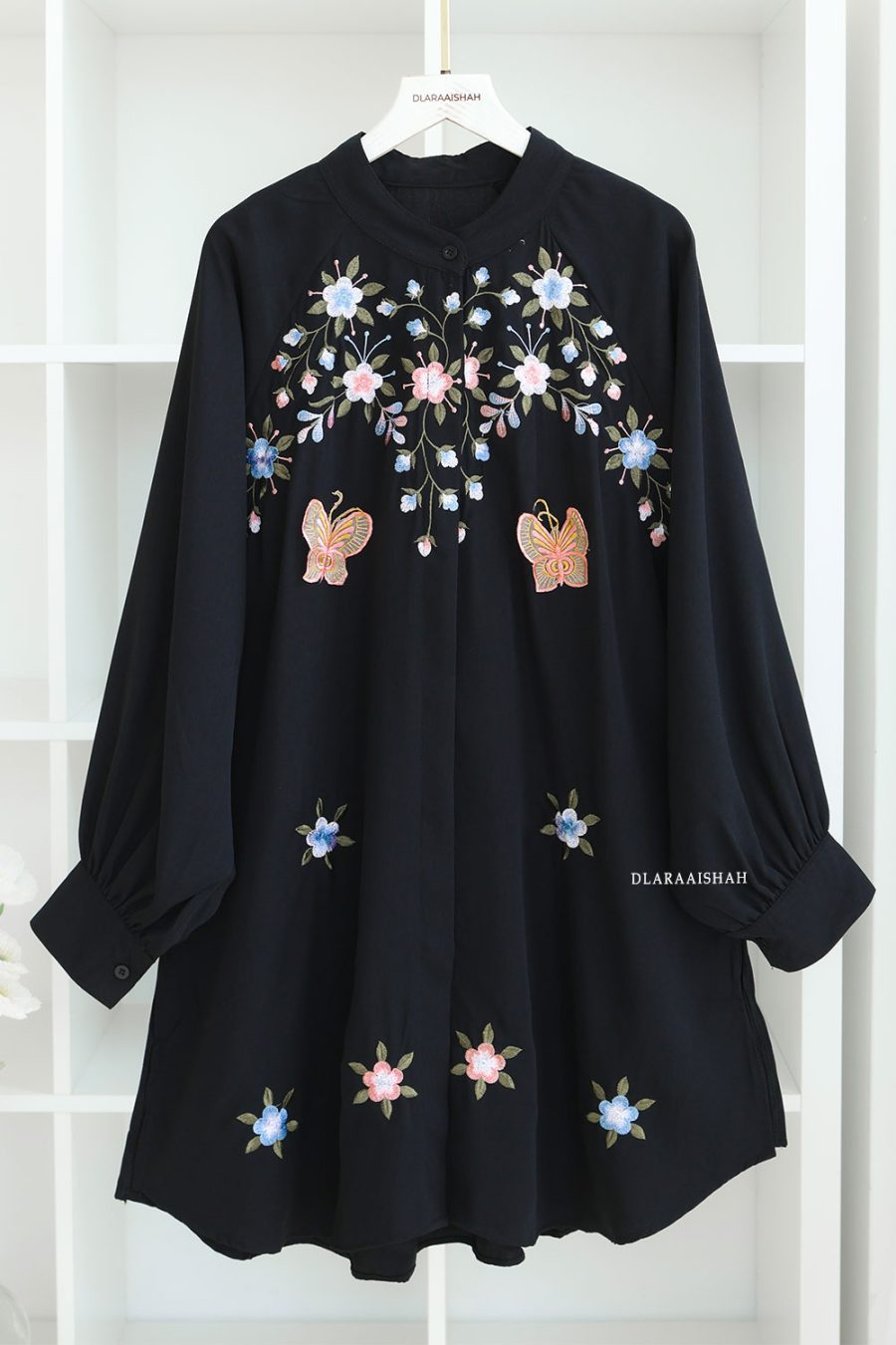 RM85.90 RM59.90 Design & Silhouette – Long flowy tunic with a relaxed loose fit – Clean hidden button placket – Raglan shoulder for a soft and feminine look Collar – Mandarin collar – Neat stitching with a single top button Material – Chiffon Blend – soft, lightweight, breathable & elegant drape Sleeves – Light puffed sleeves –…