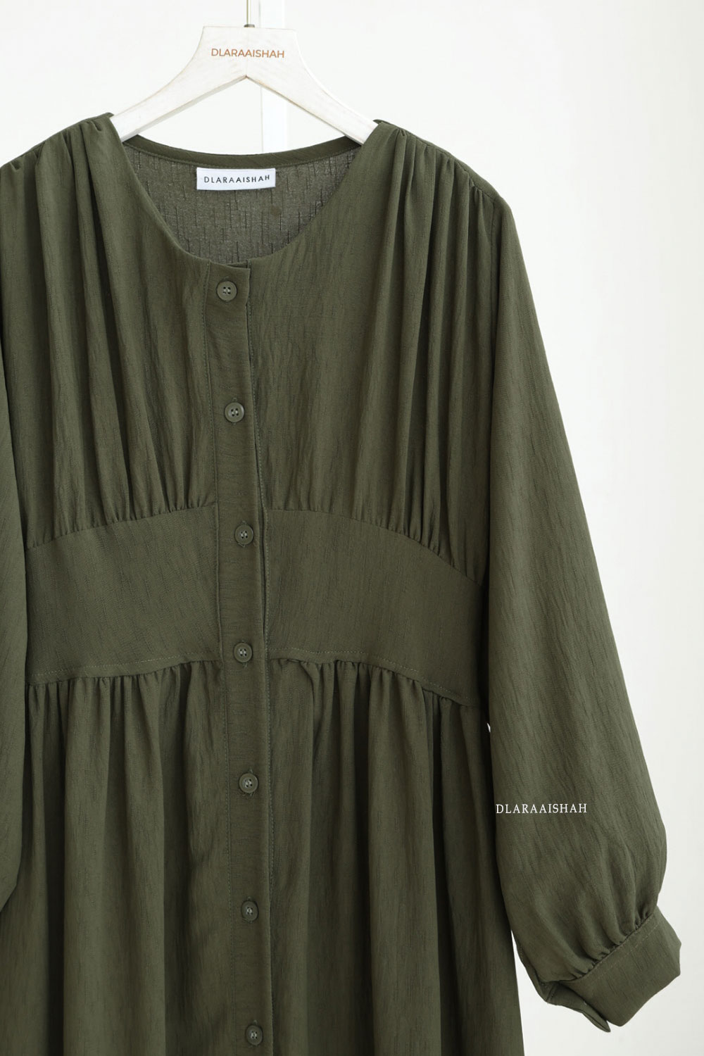 Surface kain ada corak halus yang buat dress nampak lebih eksklusif, dan yang bestnya: tak mudah renyuk & mudah jaga.