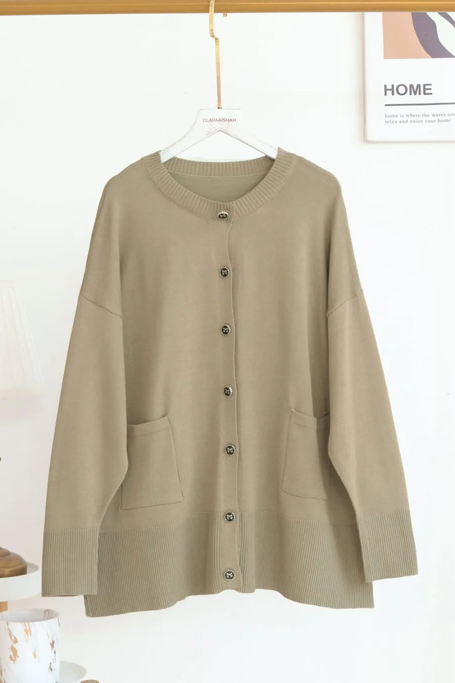 KIMI BUTTON KNIT TOP – OLIVE DUST