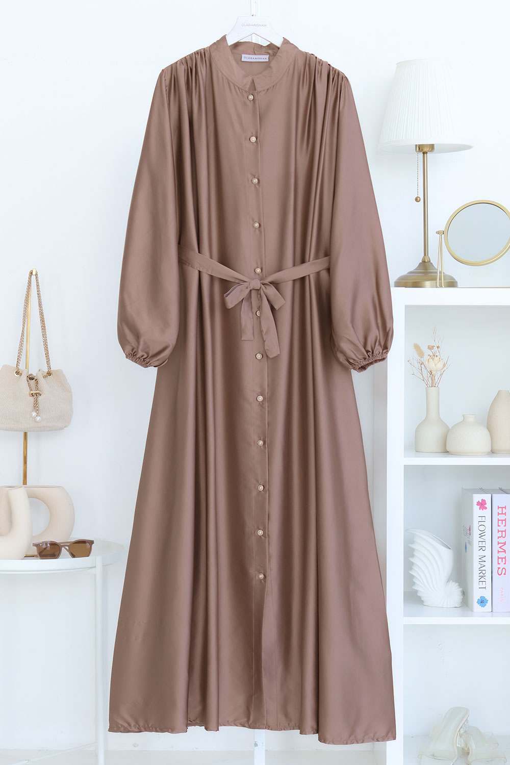 MAYLEEN DRESS – NUDE BROWNIn stock