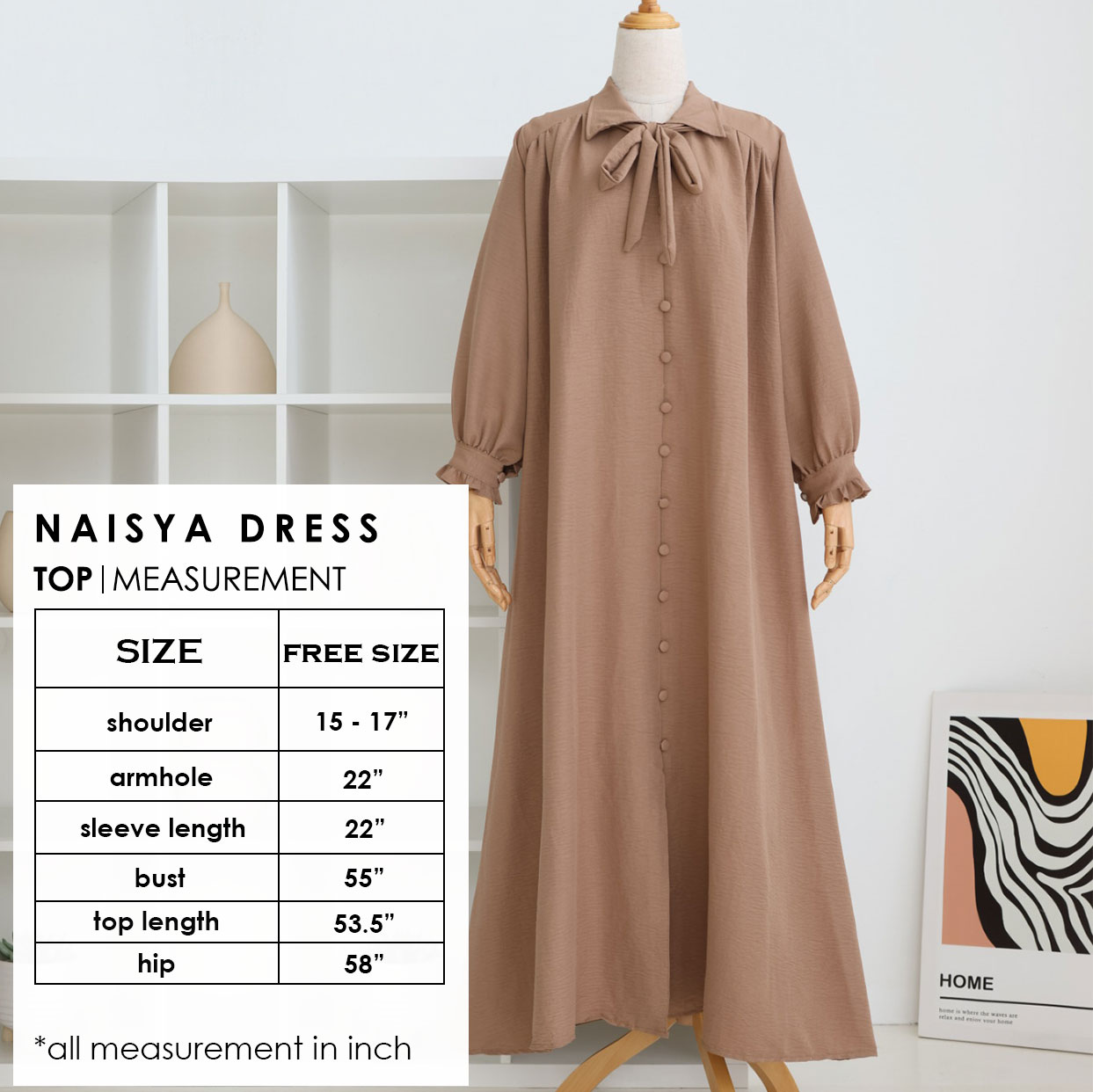 NAISYA DRESS – CARAMEL BROWNIn stock