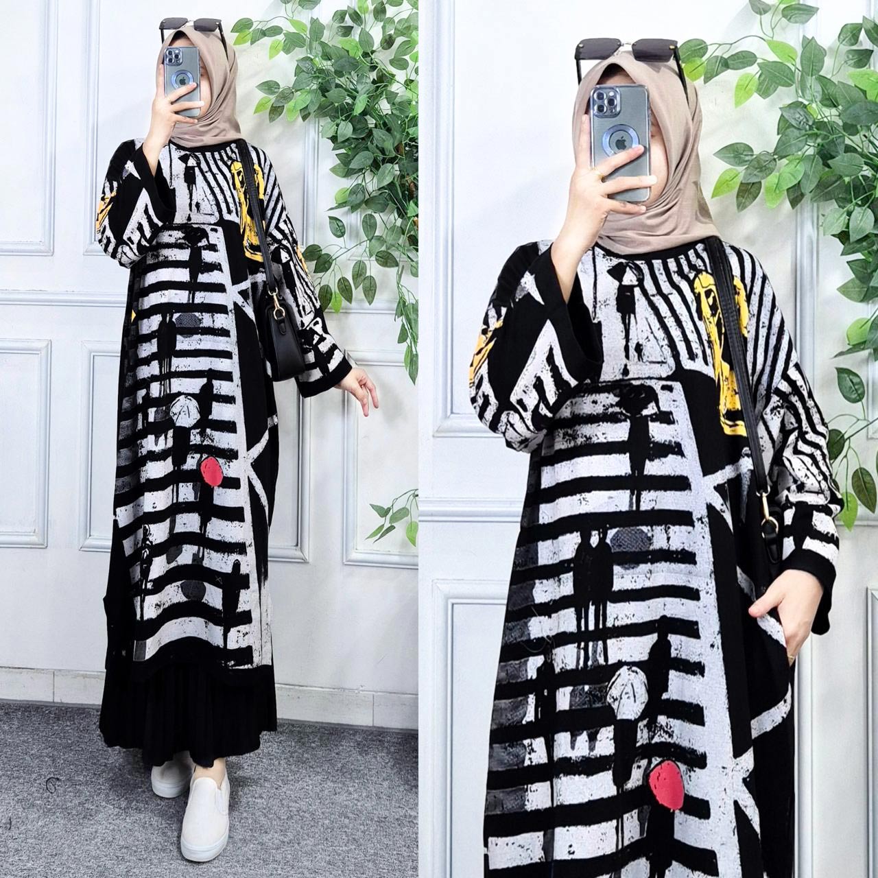 Crafted from soft, breathable cotton fabric, this piece features an abstract monochrome print with artistic brushstroke detailing and modern graphic accents for a statement, gallery-inspired look.